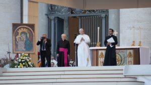 Tako ćete i dalje biti kvasac mira, dobra i nade u svijetu ranjenom nasiljem i ratovima, koji su i vama iz povijesti poznati. Neka vas Gospodin blagoslovi, a Blažena Djevica Marija, Najvjernija odvjetnica Hrvatske, čuva pod svojim plaštem i prati u svakodnevnom životu. Vama, vašim obiteljima i cijelom hrvatskom narodu od srca udjeljujem Apostolski blagoslov – znak Papine blizine i ljubavi prema svakome od vas.