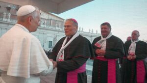 Tješi činjenica da korijeni vaše vjere nisu ostali nepomični u prošlosti, nego i danas donose plodove zahvaljujući svjedočanstvu vaših obitelji, župnih zajednica i udruga. Tradicija primljena od vaših otaca neprocjenjivo je blago koje brižno čuvate i koje ste pozvani neprestano obnavljati, prepoznajući nadahnuća Duha Svetoga. Od srca vam zahvaljujem na vjernosti koju živite u svakodnevici.