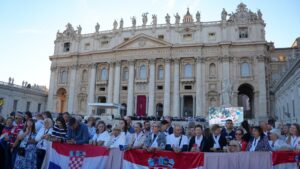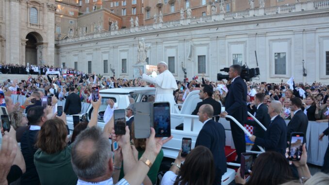 Poslije podne su hodočasnici strpljivo čekali u redu kako bi ušli na Trg sv. Petra u Vatikanu i dočekali papu Lava XIV. te sudjelovali u misnom slavlju koje je predvodio predsjednik HBK i zagrebački nadbiskup Dražen Kutleša u zajedništvu s hrvatskim biskupima i svećenicima.