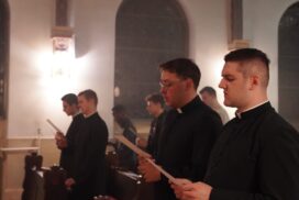 ĐAKOVO (TU) – U kapeli Bezgrešnog Začeća Blažene Djevice Marije u Bogoslovnom sjemeništu u Đakovu 29. studenoga 2025. održano je bdjenje uoči primanja službe akolitata za koju su se pripremala petorica bogoslova Đakovačko-osječke nadbiskupije: Bože Serdarušić (Koblenz), Filip Hendl (Podvinje), Dario Bajraktari (Široko Polje), Mario Vučko (Otok) i Josip Krešo (Tenja).