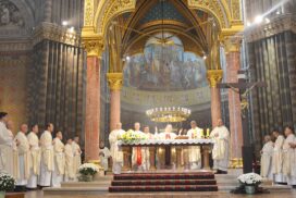 ĐAKOVO (TU) – Đakovačko-osječki nadbiskup Đuro Hranić i veliki kancelar Katoličkog bogoslovnog fakulteta u Đakovu u četvrtak, 6. studenoga 2025. predvodio je misno slavlje u katedrali sv. Petra povodom proslave 219. dana KBF-a. Uz pomoćnog biskupa Ivana Ćurića i generalnog vikara Srijemske biskupije Josipa Ivešića, dekana KBF-a Ivicu Pažina i rektora Bogoslovnog sjemeništa dr. Stjepana Radića koncelebrirala su još četrnaestorica svećenika, profesora KBF-a i drugih gostiju. Posluživali su novozaređeni đakoni Karlo Strišković i Herman Kodjo, a u asistenciji su bili đakovački bogoslovi.