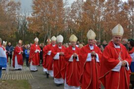 VUKOVAR (TU) – Mons. Tomislav Rogić, šibenski biskup predvodio je misno slavlje na Memorijalnom groblju u Vukovaru 18. studenoga 2025. na nadbiskupijskom spomen-hodočašću o 34. obljetnici stradanja Vukovara. Uz đakovačko-osječkog nadbiskupa Đuru Hranića koncelebrirala su još 18 nad/biskupa, nekoliko provincijala i više od 50 svećenika. Posluživali su đakovački bogoslovi i đakoni Gutenberg Sourou Hounye i Hermann Zinsou Kodjo .
