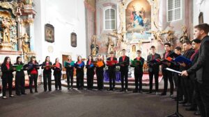 U ozračju večernje mise Ženski komorni zbor je započeo program skladbom „Bezgrješna Djevice“, autora o. Kamila Kolba, koji je prije šezdesetak godina djelovao u tom samostanu.