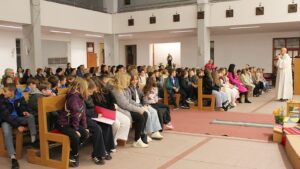 Nakon molitve krunice, župnik je djeci na zanimljiv i slikovit način približio svoje iskustvo s misijskog putovanja na Madagaskar, pokazujući fotografije koje su ih se posebno dojmile. Istaknuo je važnost zahvalnosti za ono što imamo. Većina stvari za koje ljudi misle da ih ima u izobilju, uzimajući u obzir hranu, vodu, odjeću i krov nad glavom, ono je što mnogi u siromašnim zemljama nemaju. „Kad razmišljamo o svojim poteškoćama, pokušajmo Bogu zahvaliti za ono što imamo. Ne moramo ići u Madagaskar da bismo bili misionari. Kao kršćani, trebamo u sebi buditi osjećaj za bližnjega. To može biti netko iz tvoje blizine kome treba tvoja pomoć“, naglasio je župnik.