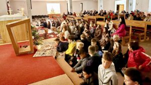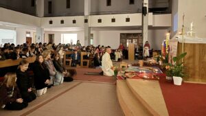 OSIJEK (TU) – U Župi sv. Ćirila i Metoda u Osijeku, u subotu,18. listopada održano je misijsko bdijenje uoči misijske nedjelje na kojemu su sudjelovali ovogodišnji prvopričesnici Osnovne škole Mladost i Osnovne škole Frana Krste Frankopana sa svojim vjeroučiteljicama te vjeroučiteljima koji također sudjeluju u pripremi za prvu pričest.
