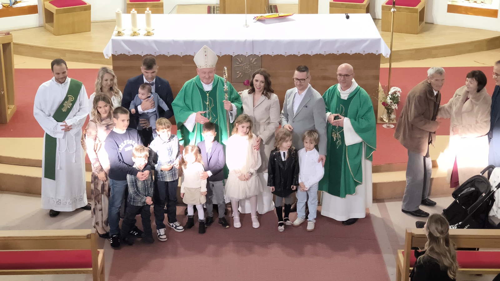 Posebno je čestitao roditeljima malenoga Mate, zahvalivši im na predanosti i hrabrosti u odgoju petero djece. Radost krštenja malenoga Mate nije samo u srcima obitelji i kumova, već u cijeloj župnoj zajednici – znak je zajedništva, ljubavi i Božjega blagoslova. Uz čestitku je biskup Petanjak podsjetio na ljepotu života u Hrvatskoj – dom gdje uvijek ima mjesta za vjeru, zajedništvo i radost, a također je prenio obitelji pozdrave đakovačko-osječkog nadbiskupa Đure Hranića.