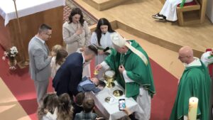 Posebno je čestitao roditeljima malenoga Mate, zahvalivši im na predanosti i hrabrosti u odgoju petero djece. Radost krštenja malenoga Mate nije samo u srcima obitelji i kumova, već u cijeloj župnoj zajednici – znak je zajedništva, ljubavi i Božjega blagoslova. Uz čestitku je biskup Petanjak podsjetio na ljepotu života u Hrvatskoj – dom gdje uvijek ima mjesta za vjeru, zajedništvo i radost, a također je prenio obitelji pozdrave đakovačko-osječkog nadbiskupa Đure Hranića.
