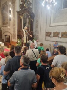 OSIJEK (TU) – Blagdan svetog Padra Pija iz Pietrelcine, svećenika, mistika i kapucina, u utorak 23. rujna po prvi puta je svečano proslavljen u kapucinskom samostanu svetog Jakova u Osijeku. Euharistijsko slavlje, uz sudjelovanje velikoga broja vjernika, predvodio je fra Anto Barišić, franjevac i poznati voditelj duhovnih obnova na službi u Pazinu. Na misi je koncelebrirao gvardijan fra Juro Šimić, koji je navijestio Evanđelje.