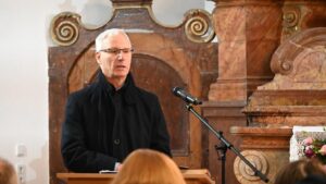 U prigodnom obraćanju nakon misnog slavlja državni tajnik za crkvena i nacionalna pitanja u Vladi Mađarske Soltész uputio je srdačne pozdrave okupljenima te istaknuo važnost zajedništva i brige za malene zajednice. Osvrnuvši se na poruku homilije, naglasio je kako je potrebno posebnu pažnju posvetiti malima i naizgled slabima u društvu. „Na male treba paziti – i mi na njih pazimo. Ako se netko brine samo za velike i jake, čini višestruku pogrešku“, poručio je, dodavši kako i zajednica Mađara u Hrvatskoj i mađarska Vlada nastoje pružiti potporu i onim sredinama koje su malobrojne, ali ustrajne. Govoreći o povijesnim iskušenjima Podolja i cijelog baranjskog kraja, istaknuo je snagu opstanka unatoč brojnim poteškoćama. „Ako pogledamo kroz povijest koliko je ovo mjesto, kao i mnoga naselja Baranje, prošlo kroz stradanja i gotovo potpuna opustošenja, a ipak je opstalo – onda je jasno da se isplati ulagati snagu i pomoć u one koji to traže“, rekao je.