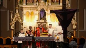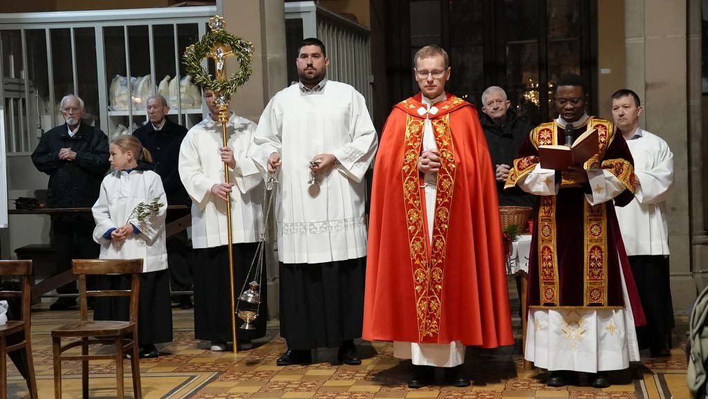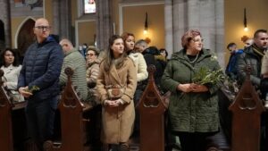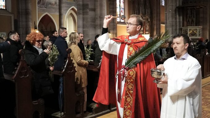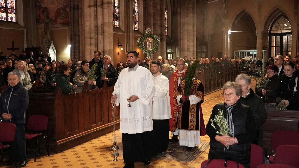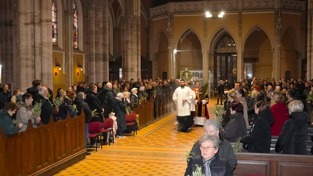 OSIJEK (TU) – Središnje svečano misno slavlje Cvjetnice – Nedjelje muke Gospodnje, 29. ožujka 2026. u osječkoj konkatedrali sv. Petra i Pavla predvodio je dekan Osječkog zapadnog dekanata i konkatedralni župnik, preč. Matej Glavica, a posluživao je đakon Hermann Zinsou Kodjo.