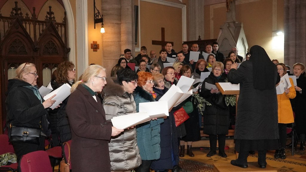 Mješoviti konkatedralni zbor pod vodstvom s. Branke Čutura, uz župnika Glavicu, navijestio je Muku po Mateju, a zatim je uslijedila prigodna propovijed.
