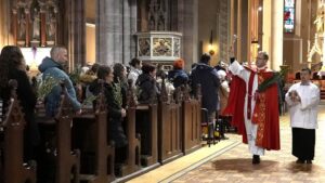 grančica i navještaj evanđelja o Isusovu ulasku u Jeruzalem održan u podnožju konkatedralne lađe. Vjernici su sudjelovali sa svojih mjesta, držeći u rukama maslinove grančice – koje su kupili pri dolasku i tako dali svoj prilog za misije, a župnik i đakon, uz pratnju ministranata, pošli su u procesiji do glavnog oltara te je Službom čitanja nastavljeno misno slavlje.