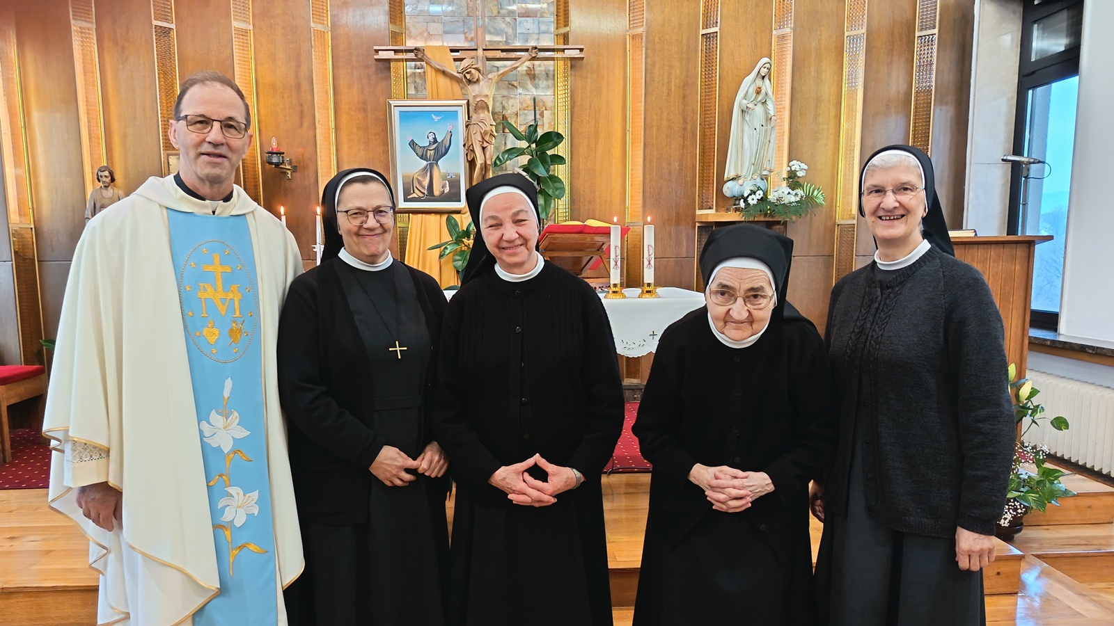 ZAGREB (TU) – U kapeli Marijinog doma, u Samostanu Milosrdnih sestara Svetoga Križa u Zagrebu, 31. siječnja 2026. godine, misno slavlje dijamantnih jubileja predvodio don Antun Tamarut. Dijamantni jubilej proslavile su s. Adela Bednjanić iz Župe Pohođenja Blažene Djevice Marije u Vrbici i s. Vincencija Slišković iz Župe Svih svetih u Đakovu.