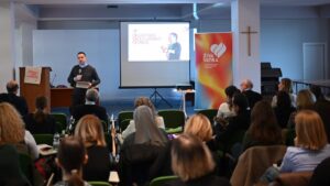 ĐAKOVO (TU) – Živa vatra formativni seminar za katehete, vjeroučitelje, svećenike i sve koji rade s mladima i prate ih na putu prema sakramentu svete potvrde, održan je u Đakovu 8. studenoga 2025. na Katoličkom bogoslovnom fakultetu. Seminar je organiziran u suradnji Katehetskog ureda Đakovačko-osječke nadbiskupije i odgovornog tima za program Žive vatre – kojega su činili don Branko Bendra, don Neven Pejić, Jelena Franić, Janja i Tin Tomić, Iris Delić i Nikola Renić. Sudjelovalo je osamdesetak sudionika iz Đakovačko-osječke nadbiskupije, Požeške i Srijemske biskupije.