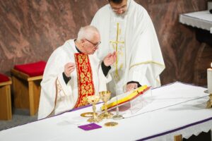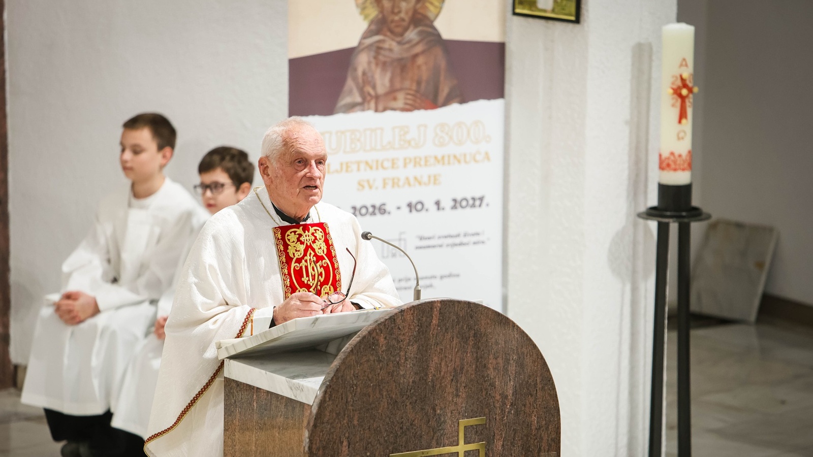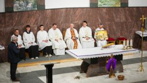 BELIŠĆE (TU) – U crkvi svetoga Josipa Radnika u Belišću u srijedu, 25. ožujka 2026. godine, večernje misno slavlje na svetkovinu Navještenja Gospodnjega predslavio je fra Bernard Rubinić (prvi belišćanski župnik). Ovim misnim slavljem se nastavila devetnica priprave za proslavu obljetnice Župe i Samostana svetoga Josipa Radnika u Belišću. Koncelebrirali su domaći franjevci, župnik i gvardijan fra Marko Neretljak te župni i samostanski vikar fra Tomislav Sabađija.