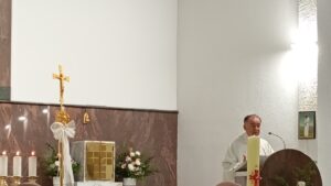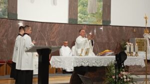 BELIŠĆE (TU) – U crkvi svetoga Josipa Radnika u Belišću u srijedu, 8. travnja 2026. godine, večernje misno slavlje, na četvrti dan Vazmene osmine, predslavio je fra Ivan Široki, župnik u Kloštru Podravskome. Ovim misnim slavljem se nastavila devetnica priprave za proslavu šezdesete obljetnice Župe i Samostana svetoga Josipa Radnika u Belišću. U sklopu devetnice održana je i misa zadušnica za poginule branitelje, pripadnike 107. brigade Hrvatske vojske. Koncelebrirao je domaći fratar, župni i samostanski vikar fra Tomislav Sabađija,