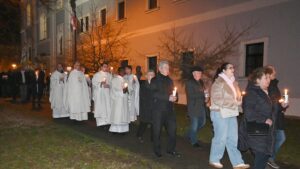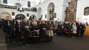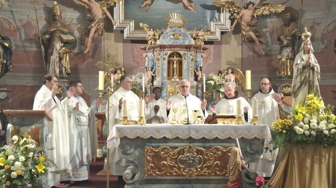 SLAVONSKI BROD (TU) – Svečano večernje blagdansko slavlje Gospe Lurdske u franjevačkoj crkvi Presvetog Trojstva u Slavonskom Brodu u srijedu, 11. veljače 2026. predslavio je ravnatelj Ustanove za uzdržavanje klera i kustos katedrale sv. Petra u Đakovu preč. Mato Gašparović. Uz gvardijana fra Slavka Milića suslavili su ravnatelj franjevačke klasične gimnazije Fra Marijana Lanosovića fra Ivan Crnković, župnik u Potočanima u Bosanskoj Posavini fra Anto Tomas, brodski svećenici: vlč. Josip Vuksanović i grkokatolički svećenici o. Aleksandar Hmilj i o. Andrey Luchin. Posluživao je đakon Gutenberg Sourou Hounye iz Benina na službi u Župi Gospe Brze Pomoći.