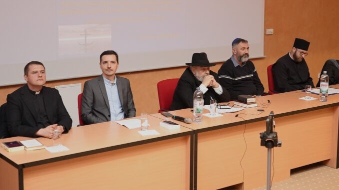 Okrugli stol će se održati u četvrtak, 26. veljače s početkom u 19:30, a sudjeluju: rabin Luciano Moše Prelević (Židovska op. Zagreb); Aleksandar Đuranović (osječki paroh – SPC); Judita Paljević Kraljik (Evanđeosko veleučilište Osijek); Senad Hevešević (imam osječki); Ivan Benaković (katolički svećenik i bibličar KBF-a u Đakovu).
