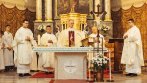 Uslijedilo je potom i večernje Euharistijsko slavlje – kao vrhunac kanonskog pastoralnog pohoda, kod kojega se u koncelebraciji pridružio i domaći sin, vlč. Mario Lešić. Slavlje je pjesmom animirao Župni mješoviti zbor, a posluživali su gotovo svi ministranti.