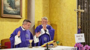 Misu je predvodio don Marko Ocvirek u zajedništvu s don Ivanom Filipovićem, a riječ je o duhovnicima Zajednice Cenacolo. Nakon mise duhovni program nastavljen je predavanjem za mlade u sklopu SKAC-ovog projekta „3 u 1“. Mladi su tijekom večeri imali priliku i za ispovijed i razgovor s brodskim studentskim kapelanom vlč. Krunoslavom Karasom.