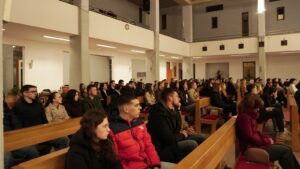 Uslijedilo je euharistijsko klanjanje kojega je predvodio vlč. Brnjić, a pjevanjem animirao Duhos bend. Na kraju susreta Marija Šeremet, nova predsjednica Udruge Duhos upoznala je studente s predstojećim događanjima za mlade u nadbiskupiji, križnom putu za mlade te odlasku na SHKM u Požegu na koje se planira organizirani odlazak, kao i na ostale mogućnosti za mlade kroz mjesec ožujak i travanj. Susret je završen druženjem u prostorima župe. Anamarija Buzgo/Foto: Marija Šeremet