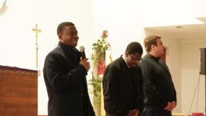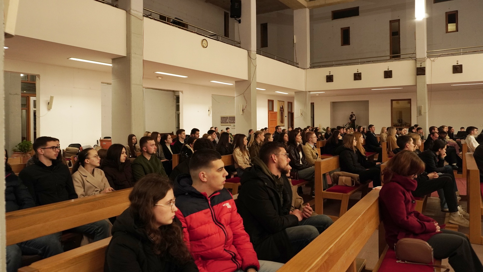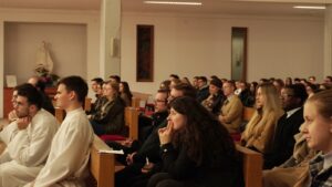 Nakon uvodne molitve koju je predvodio vlč. Josip Brnjić, pomoćnik studentskog kapelana, predstavljeni su đakoni: Karlo Strišković iz Župe sv. Petra u Petrijevcima te Gutenberga Sourou Hounye i Hermanna Zinsou Kodjo iz Benina. Đakonima se priključio i vlč. Marko Koprčina, rodom iz Sinja, a trenutno na službi u Beogradskoj nadbiskupiji. Zajedno su progovorili o svojoj dosadašnjoj đakonskoj i svećeničkoj službi te ohrabrili mlade da ustraju u svom studiranju stavljajući Boga na prvo mjesto, a mladima preporučili da mole za njih.