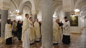 Na kraju misnoga slavlja mons. Marijanović, svi koncelebranti, bogoslovi, zbor i Božji narod sišli su u kriptu katedrale i pomolili se na grobu biskupa Strossmayera. Tiskovni ured