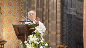 Govoreći o cijeloj crkvi koja se nalazi na putu u Emaus, svaki njezin pojedinac, često se nađe u mraku, kao da tapka ali, ohrabrio je mons. Marijanović, da Gospodin ide s nama, da je On s nama na putu, te je nastavio: „Tako je u svoje vrijeme bio i sa biskupom Strosmayerom kojemu je gorjelo srce dok je slušao evanđelje. I zapalilo je u njemu vjeru da se u svoje vrijeme odazvao na njegov poziv i postao svećenik i biskup starodrevne Đakovačke i Srijemske biskupije. Jedan je od rijetkih koji je bio biskup 55 godina. Što je činio, činio je iz vjere za vjeru, za domovinu a sve pod jednim geslom Prosvjetom ka slobodi.“