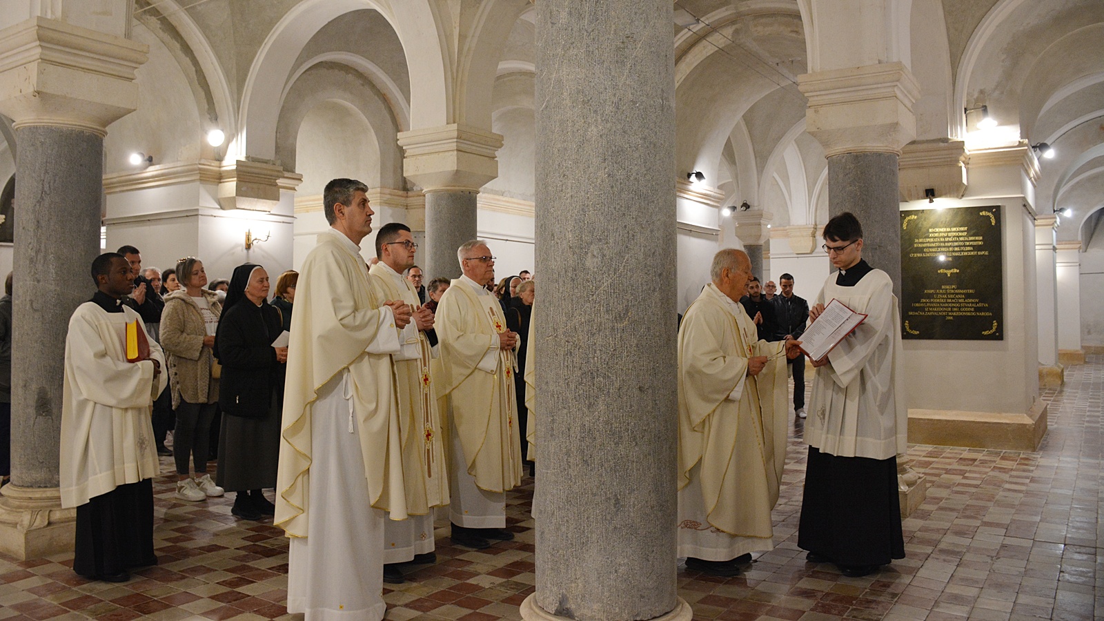 Na kraju misnoga slavlja mons. Marijanović, svi koncelebranti, bogoslovi, zbor i Božji narod sišli su u kriptu katedrale i pomolili se na grobu biskupa Strossmayera. Tiskovni ured