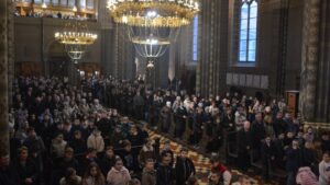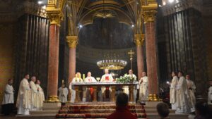 Uvodeći u misno slavlje biskup Ivan je rekao da doista dolikuje da je velika i lijepa đakovačka katedrala urešena onim što je najdragocjenine – Božjim narodom na ulasku u ovogodišnja slavlja kršćanske Pashe, spomena Kristove muke smrti i uskrsnuća, te je nastavio: