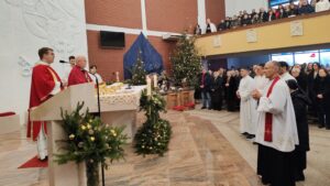 OSIJEK (TU) – U retfalačkoj Župi Uzvišenja sv. Križa u Osijeku na blagdan sv. Stjepana Prvomučenika, 26. prosinca 2025., središnje svečano misno slavlje predvodio je župnik preč. Ivan Jurić, a propovijedao đakon Karlo Strišković. Svirao je Seniorski tamburaški orkestar osječkog Slavonskog tamburaškog društva (STD) „Pajo Kolarić“ i pjevala Ženska vokalna skupina „Šokadija“ uz ravnanje maestra Dragutina Stivaničevića, retfalačkoga župljanina, i orguljsku pratnju Domagoja Čošića.