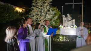 Molitvu je predvodio župnik Ante Šiško, pozivajući okupljene vjernike na vjernost bračnom zavjetu, vjeru u bolje sutra i molitvu za mir u svijetu. U tišini večeri, uz svjetlost svijeća, zajednica je molila i pjevala s nadom da svi, poput Isusa, rastu u ljubavi, vjeri i ustrajnosti.
