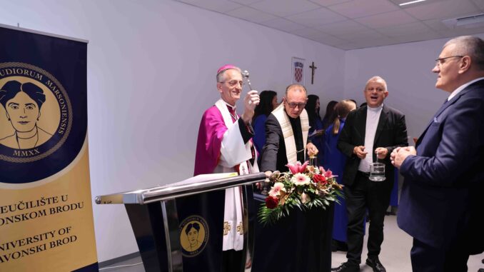 SLAVONSKI BROD (TU) – Đakovačko-osječki pomoćni biskup Ivan Ćurić blagoslovio je u četvrtak 25. rujna 2025. novouređeni prostor Sveučilišta u Slavonskom Brodu, najmlađeg javnog sveučilišta u Hrvatskoj, na adresi Ulica 108. brigade ZNG-a 36. Time je ujedno proslavljen i Dan sveučilišta o 5. obljetnici djelovanja.