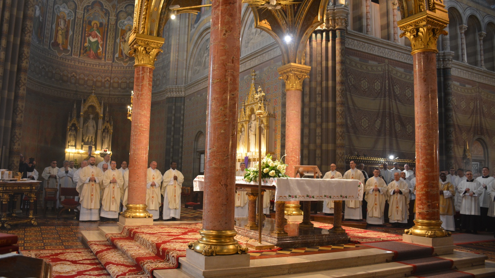 Svečanim liturgijskim pjevanjem ravnao je mo. Ivan Andrić, svirao je mo. Vinko Sitarić a zbor su činili svećenici i bogoslovi. Kod oltara su posluživali đakovački bogoslovi i čak četvorica đakona: vlč. Ivan Turiš – tajni đakon i đakoni svećenički kandidati; vlč. Karlo Strišković, Hermann Zinsou Kodjo i Gutenberg Sourou Hounye.