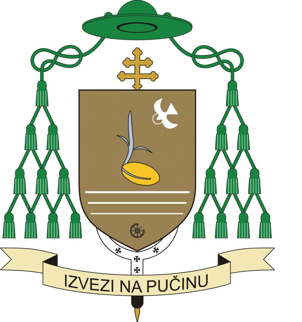 U podnožju štita je nadbiskupovo geslo: Izvezi na pučinu (latinski Duc in altum). Izabrano je prilikom imenovanja đakovačkim i srijemskim pomoćnim biskupom 2001. godine. Navedene riječi iz Lukina evanđelja (Lk 5,4) tada je aktualizirao papa bl. Ivan Pavao II. u svom apostolskom pismu “Ulaskom u novo tisućljeće” i predstavio ih kao nadahnuće i geslo pastoralno-evangelizacijskih nastojanja Crkve na početku trećeg tisućljeća. One ostaju izazov i nadahnuće i za poslijesinodsku obnovu Đakovačko-osječke nadbiskupije te za cjelokupna nastojanja Crkve u novim vremenima.
