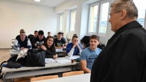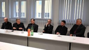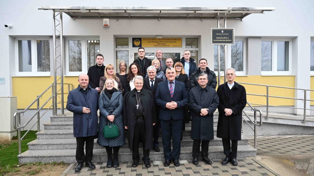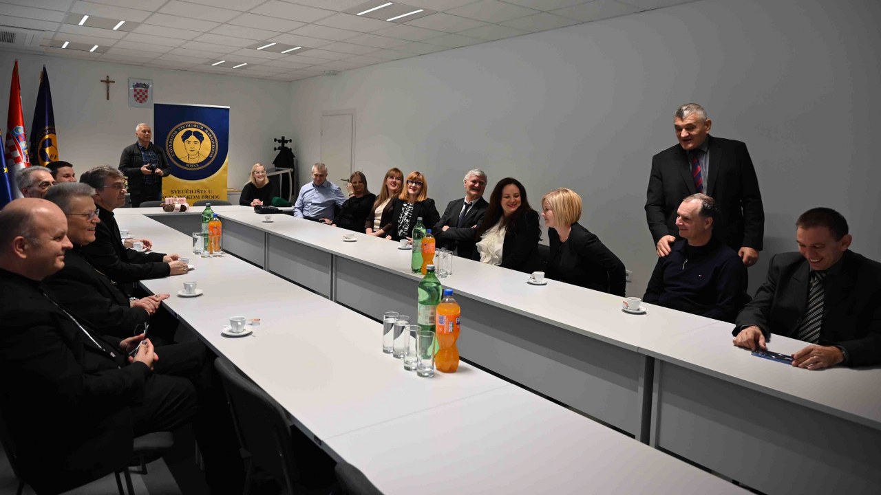 SLAVONSKI BROD (TU) – Đakovačko osječki nadbiskup i metropolit Đuro Hranić, požeški biskup Ivo Martinović, srijemski biskup Fabijan Svalina i pomoćni đakovačko-osječki biskup Ivan Ćurić pohodili su u srijedu, 3. prosinca 2025. Sveučilište u Slavonskom Brodu, najmlađe javno sveučilište u Hrvatskoj.