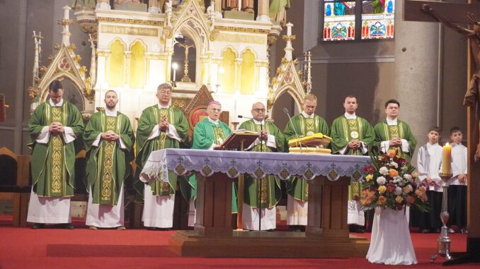 OSIJEK (TU) – Misno slavlje zaziva Duha Svetoga na početku nove akademske godine za osječko Sveučilište Josipa Jurja Strossmayera u konkatedrali je predvodio đakovačko-osječki nadbiskup Đuro Hranić, u nedjelju, 12. listopada 2025. Koncelebrirali su mons. dr. Ivica Pažin, dekan KBF-a u Đakovu i predstojnik Nacionalnog katehetskog ureda, vlč. dr. Davor Vuković, sveučilišni kapelan i prodekan KBF-a u Đakovu, vlč. dr. Boris Vulić, prodekan KBF-a u Đakovu, vlč. Mario Žigman, župnik Župe sv. Luke evanđelista u Josipovcu i studentski kapelan Sveučilišta J. J. Strossmayera u Osijeku, vlč. Matej Glavica, konkatedralni župnik, vlč. Josip Brnjić, župni vikar Župe sv. Ćirila i Metoda u Osijeku te pomoćnik studentskog kapelana i vlč. Nikola Klemen, tajnik Nadbiskupskog ordinarijata.
