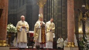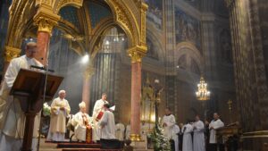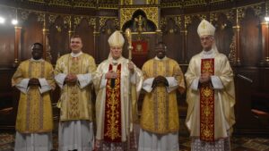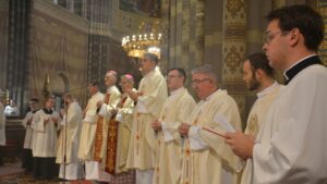 ĐAKOVO (TU) – Đakovačko-osječki nadbiskup metropolit Đuro Hranić u nedjelju 26. listopada 2025. predvodio je svečano euharistijsko slavlje u đakovačkoj katedrali sv. Petra tijekom kojega je zaredio trojicu đakona: Karla Striškovića iz Župe sv. Petra u Petrijevcima za Đakovačko-osječku nadbiskupiju te Gutenberga Sourou Hounye iz Župe sv. Terezije od Djeteta Isusa, Drogo-Adjina i Hermanna Zinsou Kodjo iz Župe sv. Benedikta, Koutoungbé. Po prvi puta u povijesti zaređena su dvojicu kandidata s Afričkoga kontinenta, za biskupiju Porto Novo u Beninu.