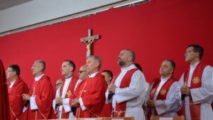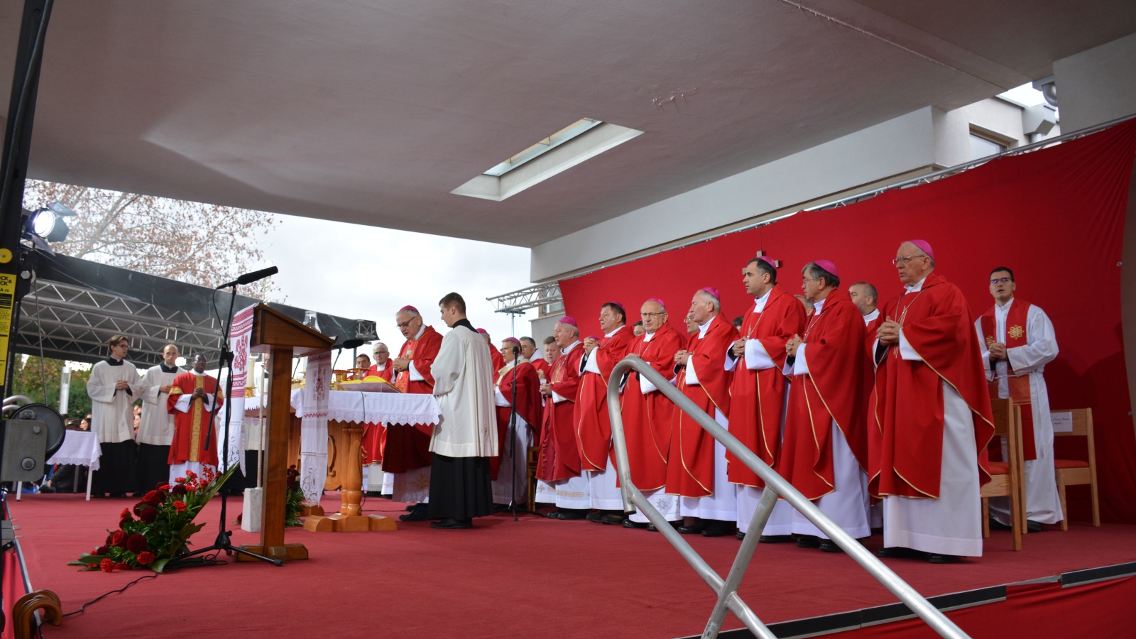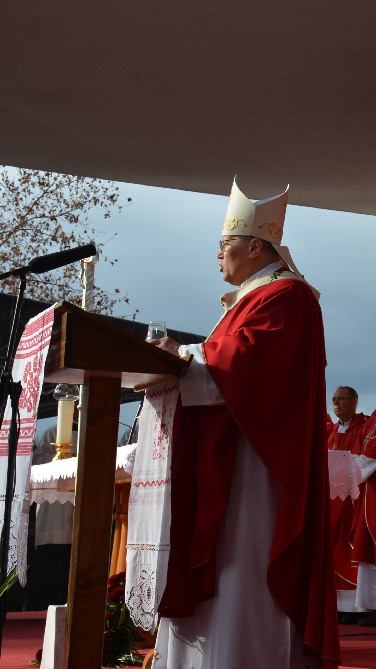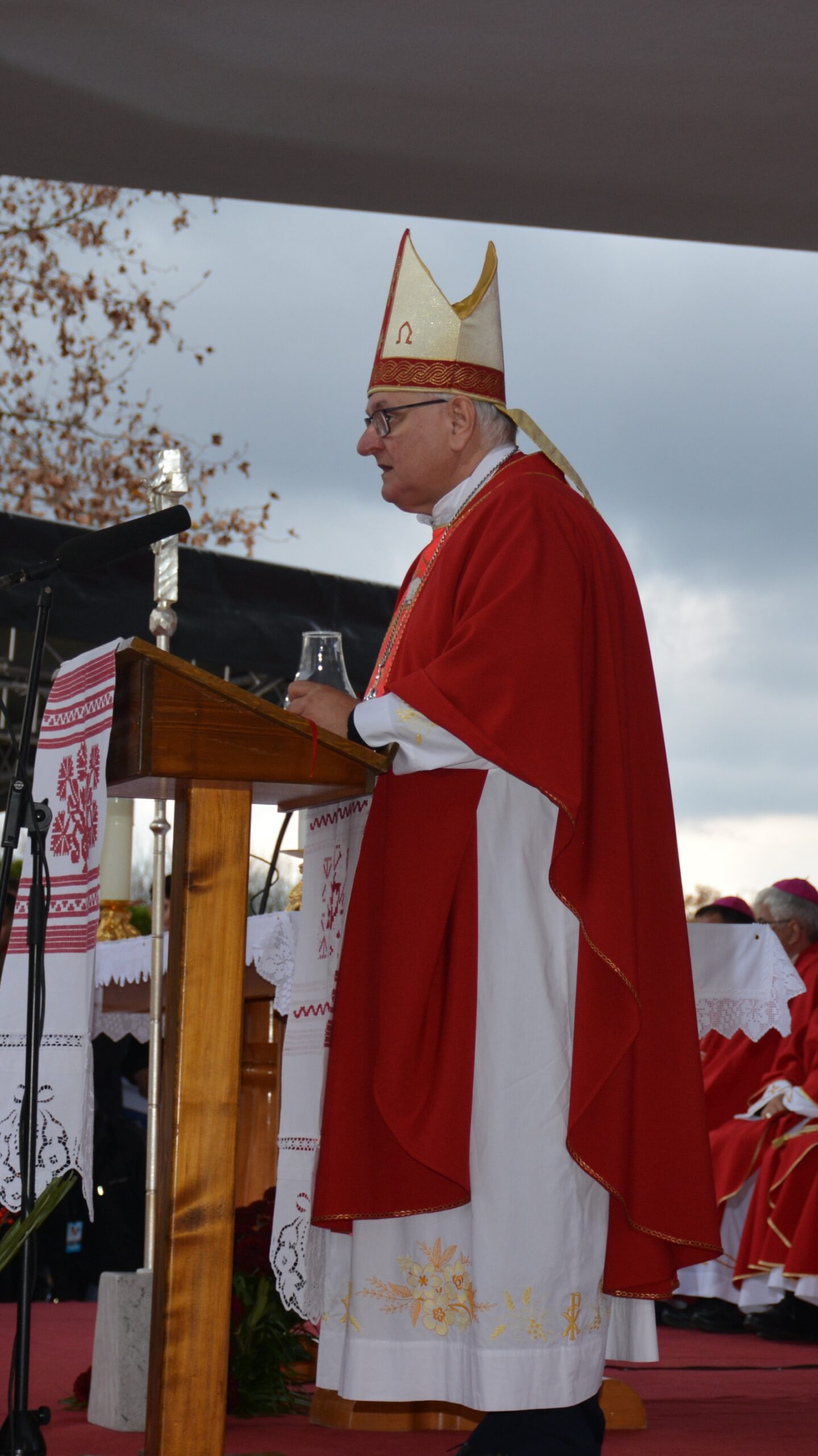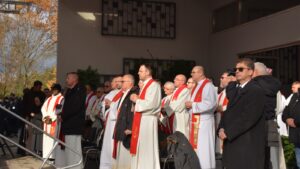 VUKOVAR (TU) – Mons. Tomislav Rogić, šibenski biskup predvodio je misno slavlje na Memorijalnom groblju u Vukovaru 18. studenoga 2025. na nadbiskupijskom spomen-hodočašću o 34. obljetnici stradanja Vukovara. Uz đakovačko-osječkog nadbiskupa Đuru Hranića koncelebrirala su još 18 nad/biskupa, nekoliko provincijala i više od 50 svećenika. Posluživali su đakovački bogoslovi i đakoni Gutenberg Sourou Hounye i Hermann Zinsou Kodjo .