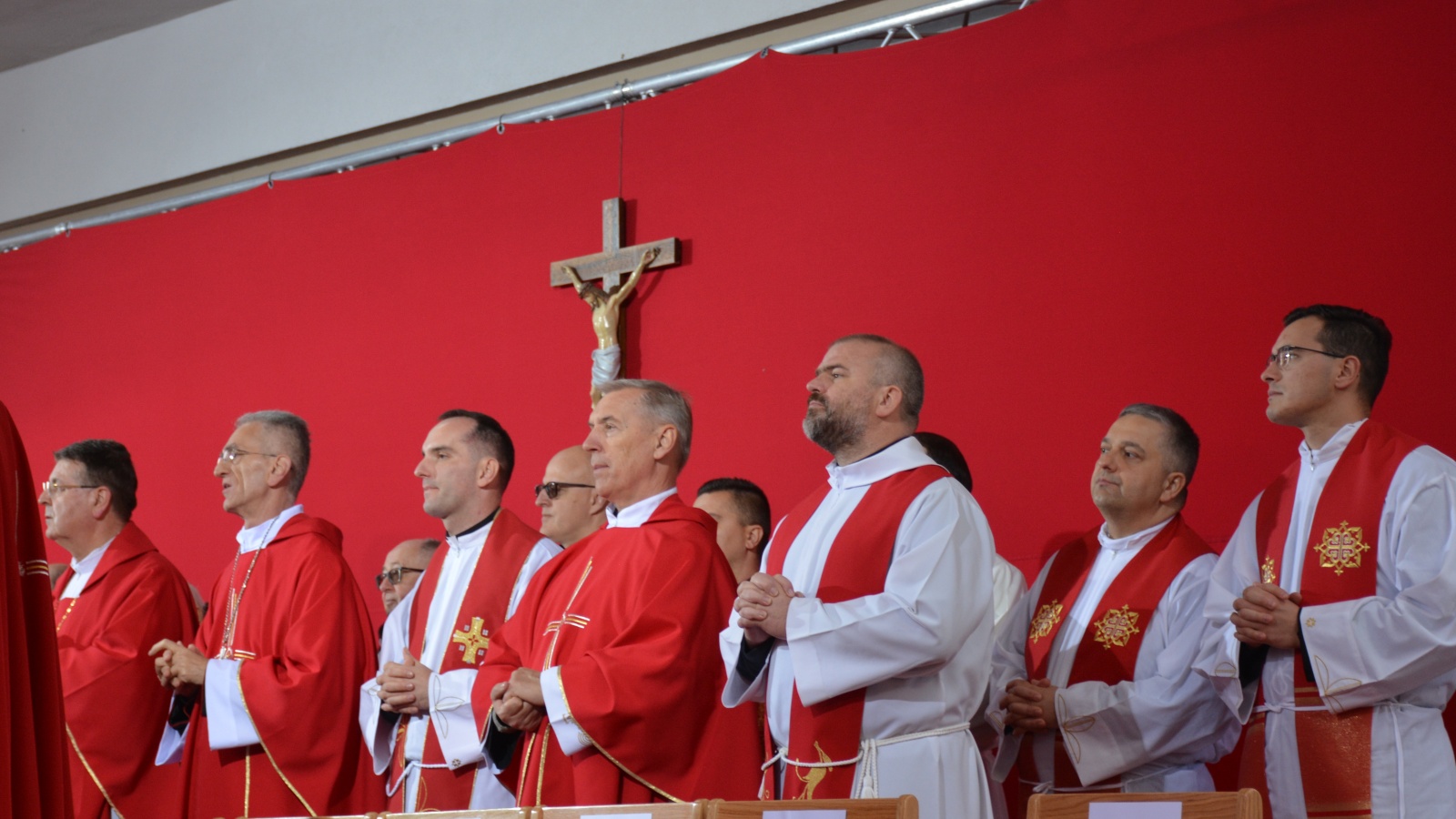 Pozdravio je mons. Hranić i sve nad/biskupe, provincijalne poglavare i poglavarice, svećenike, redovnike i redovnice, bogoslove, sjemeništarce te redovničke kandidate i kandidatice. Osobiti pozdrav i zahvalnost uputio je mons. Rogiću, predvoditelju euharistijskoga slavlja. Pozdrav je nadbiskup Đuro uputio predstavnicima hrvatske vlasti na čelu s Andrejom Plenkovićem i svim drugima pristiglim na Memorijalno groblje.