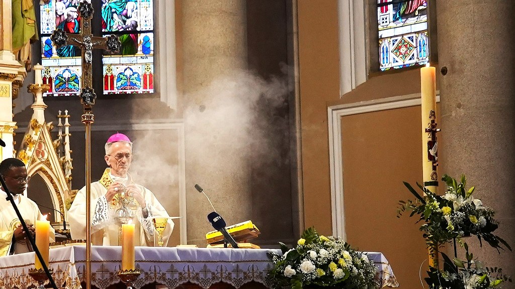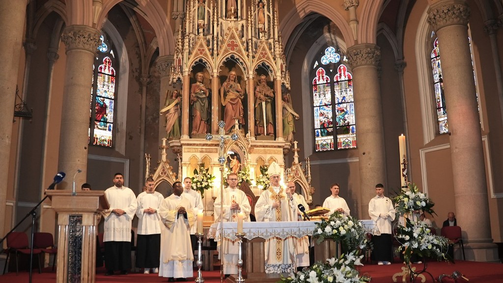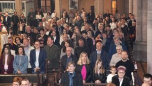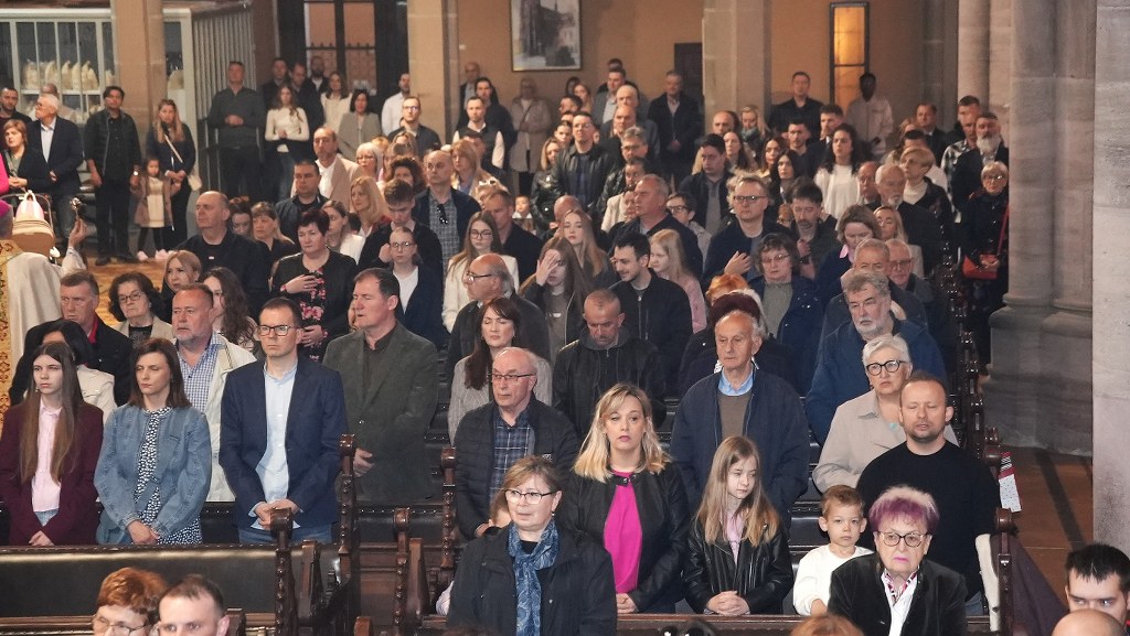 OSIJEK (TU) – „Doista, uskrsnuo je Gospodin! Na tom izvornom svjedočanstvu apostola u zajednici Crkve utemeljuje se naše svetkovanje i u njemu vam svima od sveg srca želim sretan, radostan i blagoslovljen Uskrs. Želimo živjeti od snage tog svjetla Krista raspetoga, njegove do kraja požrtvovne ljubavi, i njegova slavnoga uskrsnuća – za nas pobjede nad zlom, grijehom i smrću. I sva je naša vjera na tome utemeljena i sav naš kršćanski život, što ga trebamo prepoznati kao svoj životni krsni poziv. Zato uvijek obnavljamo snagu svog osobnog svjedočanstva tog događaja spasenja u Kristovoj smrti i njegovu uskrsnuću“, rekao je pomoćni biskup đakovačko-osječki Ivan Ćurić započinjući u nedjelju, 5. travnja 2026. svečano misno slavlje Uskrsnuća Gospodinova u osječkoj konkatedrali sv. Petra i Pavla.