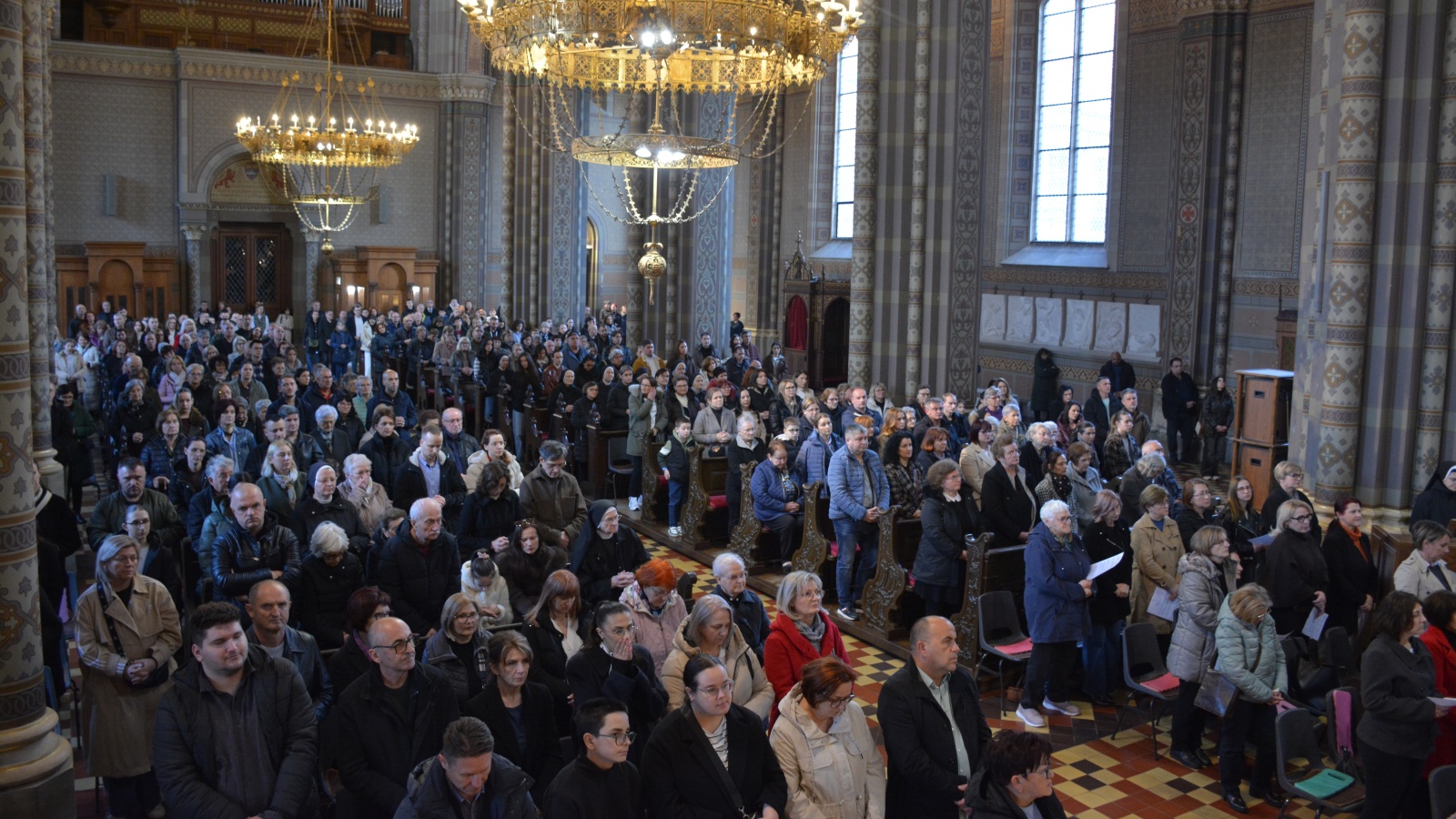 ĐAKOVO (TU) – Obrede Velikog petka u đakovačkoj katedrali, 3. travnja 2026. predvodio je katedralni župnik Alojz Kovaček, a u obredima su sudjelovali đakovačko-osječki nadbiskup Đuro Hranić, pomoćni biskup Ivan Ćurić, svećenici središnjih nadbiskupijskih ustanova, Milosrdne sestre sv. Križa i vjernici đakovačke Župe Svih svetih.