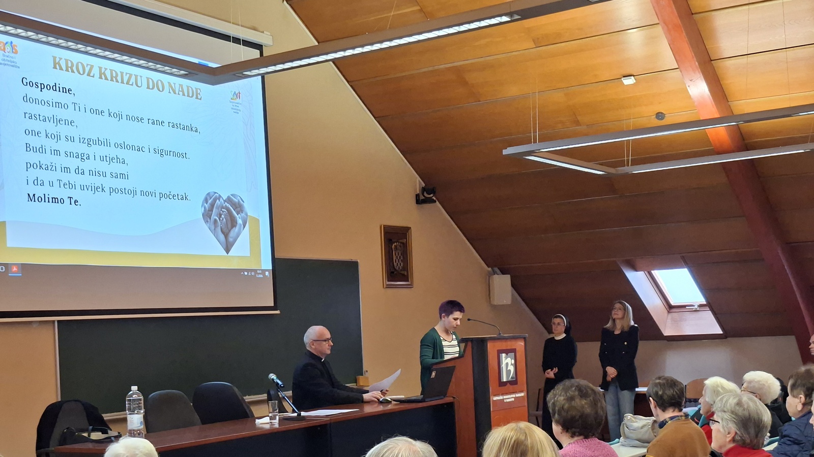 Radni dio seminara nastavljen je na Katoličkom bogoslovnom fakultetu predavanjem s. dr. Silvane Fužinato pod naslovom „Kroz krizu do nade“. Dr. Fužinato predavanje je započela od biblijskog izvještaja o Abrahamu, Sari i Hagari (Post 16; 21), te je sudionicima približila iskustvo obiteljske krize kao duboko ljudsku i duhovnu stvarnost. Istaknula je kako je i ta biblijska obitelj, unatoč Božjim obećanjima, prolazila kroz napetosti, nesigurnosti, ljubomoru, borbe za prevlast, osjećaj odbačenosti i straha za budućnost. Kriza neplodnosti, narušeni odnosi između Sare i Hagare te bolne odluke koje su uslijedile, pokazale su koliko su i biblijski likovi ranjivi, ograničeni i skloni traženju “ljudskih rješenja” mimo Božjeg nauma. Poseban naglasak stavljen je na misao da kriza u biblijskom smislu nije kazna ni prokletstvo, nego prostor istine, tako kriza razotkriva što čovjek nosi u srcu, u koga ili u što stavlja svoje pouzdanje te razbija iluzije o vlastitoj samodostatnosti. Poput izraelskog naroda u pustinji, i obitelji su ponekad vođene putem koji izgleda kao gubitak, ali zapravo postaje mjesto susreta s Bogom koji odgaja, pročišćuje i vraća čovjeka na bitno.