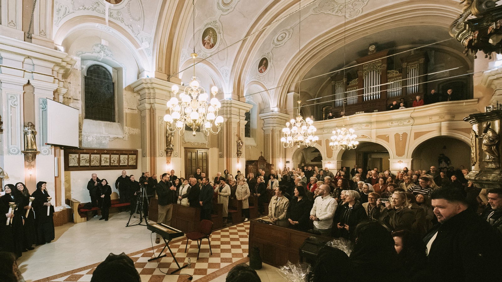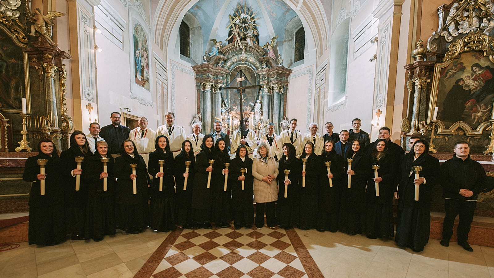 OSIJEK (TU) – Oratorij „Za Križen“ autora Slavka Reljića održan je u subotu, 14. ožujka 2026. u župnoj crkvi Preslavnoga Imena Marijina u Osijeku. Oratorij nije bio samo vrhunsko glazbeno djelo, već autentičan odjek pet stoljeća stare pučke pobožnosti s otoka Hvara. Temeljio se na jedinstvenoj noćnoj procesiji „Za Križen“ koja je pod zaštitom UNESCO-a, a čiju okosnicu čine arhaični korizmeni napjevi iz 15. stoljeća. Središnje mjesto zauzeo je „Gospin plač“, potresni dijalog kantadura na čakavskom narječju koji izražava Bogorodičinu tugu za Sinom.