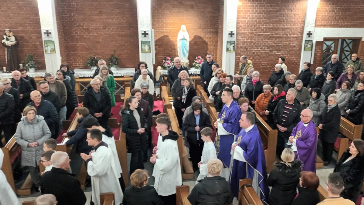 BELIŠĆE (TU) – U crkvi svetoga Josipa Radnika u Belišću, u srijedu 1. travnja 2026. godine, večernje misno slavlje kojim se nastavila devetnica priprave za proslavu šezdesete obljetnice Župe i Samostana svetoga Josipa Radnika u Belišću predslavio je vlč. dr. sc. Josip Bošnjaković, izvanredni profesor iz područja teologije i psihologije na Katoličkom bogoslovnom fakultetu u Đakovu, i voditelj bračnih i obiteljskih savjetovališta u Đakovačko-osječkoj nadbiskupiji. Koncelebrirali su domaći fratri, župnik i gvardijan fra Marko Neretljak te župni i samostanski vikar fra Tomislav Sabađija.