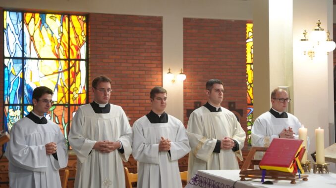 OTOK (TU) – Na prvu nedjelju došašća, 30. studenoga 2025. u Župi sv. Antuna Padovanskog u Otoku, svečano misno slavlje predslavio je đakovačko-osječki nadbiskup metropolit Đuro Hranić, koji je petorici đakovačkih bogoslova podijelio službu akolitata. Suslavili su: preč. Antun Knežević, domaći župnik; odgojitelji u Bogoslovnom sjemeništu u Đakovu, preč. dr. Stjepan Radić, rektor, vlč. dr. Davor Senjan, vicerektor i ekonom i vlč. mr. Stjepan Matezović, duhovnik; vlč. Nikola Klemen, tajnik Nadbiskupskog ordinarijata.