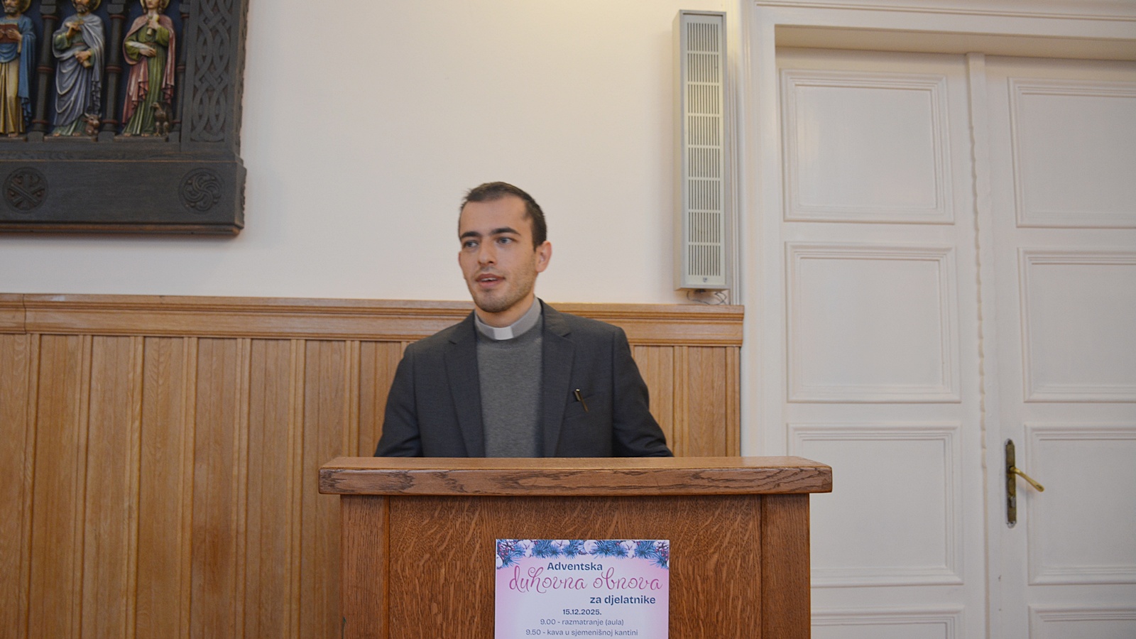 ĐAKOVO (TU) – Predbožićna duhovna obnova za djelatnike središnjih nadbiskupijskih ustanova održana je u ponedjeljak, 15. prosinca 2025. u Bogoslovnom sjemeništu u Đakovu. Obnovu je organizirao vicerektor i ekonom Sjemeništa dr. Davor Senjan, a voditelj obnove bio je vlč. Robert Erk, svećenik-student na posije diplomskom studiju u Rimu.