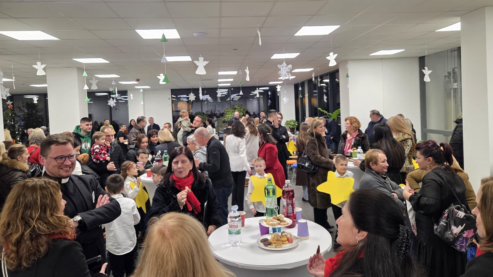 Priredbu je svojim dolaskom uveličao i đakovačko-osječki nadbiskup Đuro Hranić koji je izrazio svoje zadovoljstvo što može biti dionikom toga događaja. Istaknuo je kako u osobi Malenoga, tek rođenog Isusa možemo pronaći sigurnost da nas u našoj ljudskosti netko razumije i prihvaća. Također je istaknuo svoju radost zbog osnutka i djelovanje prve katoličke osnovne škole na području Đakovačko-osječke nadbiskupije te je izrazio nadu i želju da se što prije svi okupe u prostorima nove školske zgrade. Prisutnima je čestitao Božić zaželjevši im trajno iskustvo Božje blizine i blagoslova.