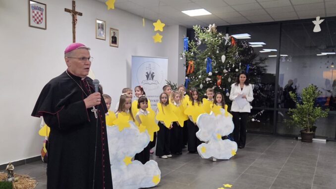 Priredbu je svojim dolaskom uveličao i đakovačko-osječki nadbiskup Đuro Hranić koji je izrazio svoje zadovoljstvo što može biti dionikom toga događaja. Istaknuo je kako u osobi Malenoga, tek rođenog Isusa možemo pronaći sigurnost da nas u našoj ljudskosti netko razumije i prihvaća. Također je istaknuo svoju radost zbog osnutka i djelovanje prve katoličke osnovne škole na području Đakovačko-osječke nadbiskupije te je izrazio nadu i želju da se što prije svi okupe u prostorima nove školske zgrade. Prisutnima je čestitao Božić zaželjevši im trajno iskustvo Božje blizine i blagoslova.