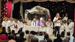 Misno slavlje se odvijalo uz štalicu, „anđeli“ su bili oko oltara, a „pastiri“ i „kraljevi“ među narodom u dvorani. Tako je simbolika betlehemskog događaja bila očita. Lijepi ugođaj stvaralo je sviranje i pjevanje dječjeg zbora Župe sv. Klare iz Starih Mikanovaca, koje je predvodila s. Natanaela Palić.